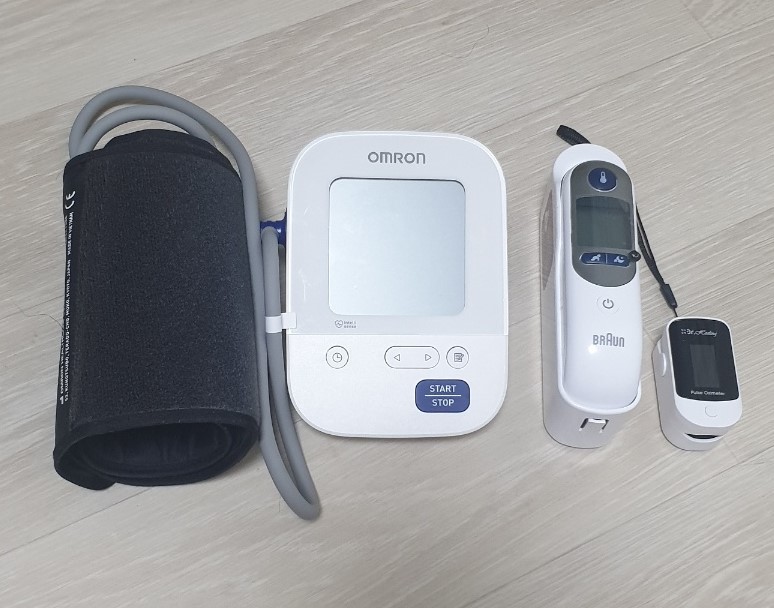 퇴원 후 가정에서 환자를 간병할때 필요한 물건이 몇 가지 있었습니다. 우선 등받이 조절이 가능한 전동침대가 필요했고 가정용 체온계, 혈압계, 산소포화도 측정기 등이 필요했습니다. 퇴원 후 주의사항을 보면 응급진료를 요하는 증상으로 고열이 명시되어 있기 때문에 체온계는 꼭 필요합니다. 고열의 기준은 따로 안 적혀 있어서 정확하지는 않지만 병원에서 간호사님한테 물었을 때 기준은 38.5도였습니다. 퇴원 후 고열은 없었지만 37.5도였을 때가 두 번 있었는데 해열제을 드시니까 금방 열이 내려가서 다행이었습니다. 집에는 해열제인 펜잘, 게보린, 타이레놀 3가지가 모두 있었고 동일성분이라 어떤 걸 드셔도 괜찮을 거 같았습니다. 혈압계는 원래 지병으로 고혈압이 있으시기 때문에 구입을 하였고 산소포화도 측정기는 꼭 의료용이 아닌 레저용으로 저렴한 제품을 구입해도 문제가 없다는 간호사님의 조언에 따라서 구매를 하고 사용에 아무 문제도 없었습니다.